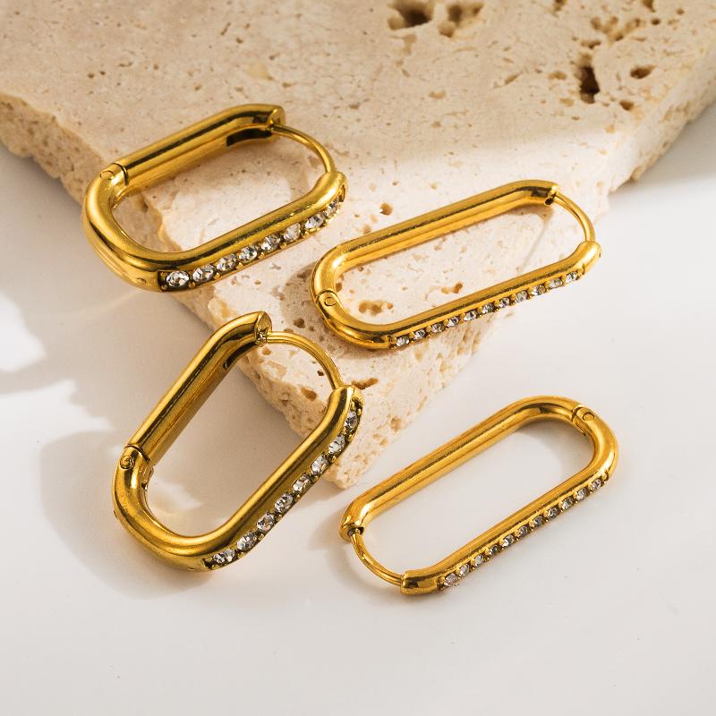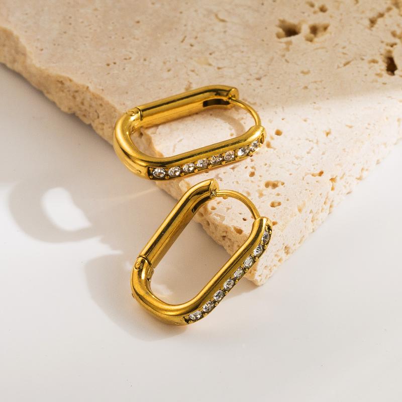 1 pair basic commute square plating inlay stainless steel zircon 18k gold plated ear studs