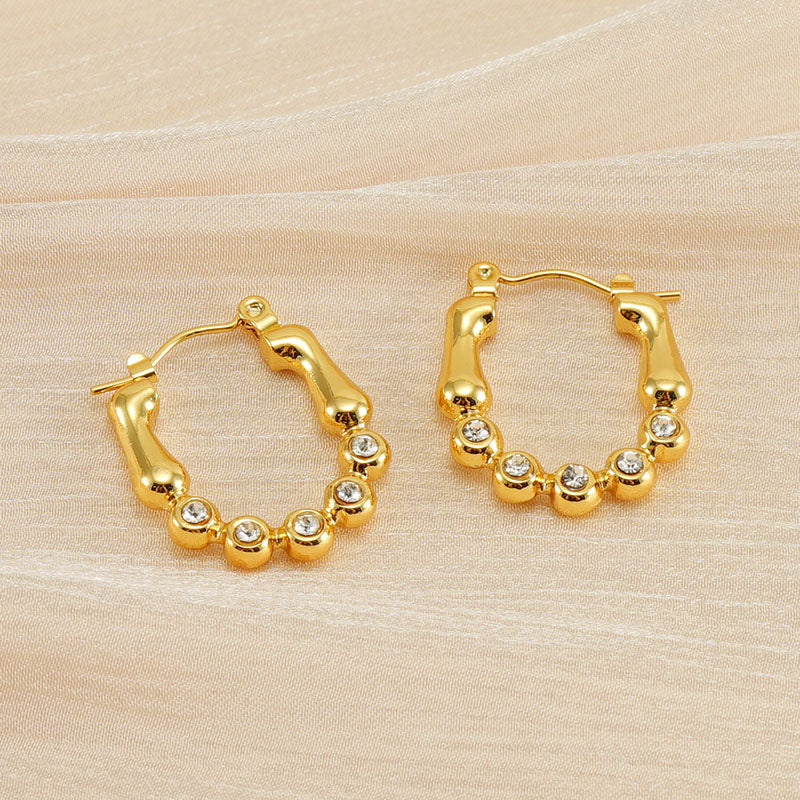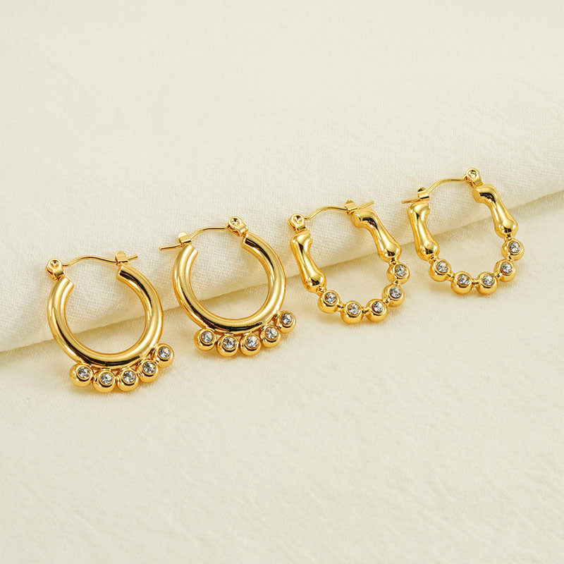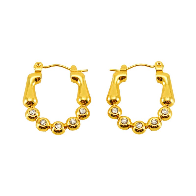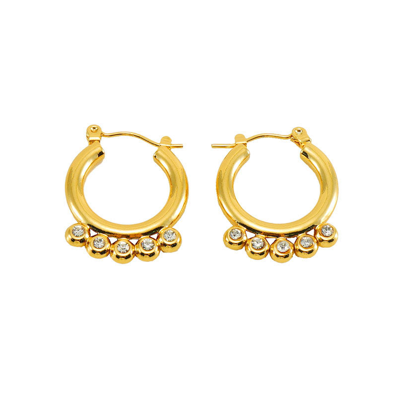 1 pair business simple style round polishing plating inlay stainless steel titanium steel rhinestones zircon 18k gold plated earrings