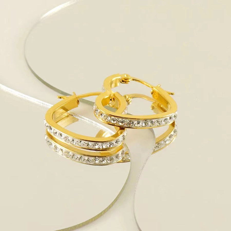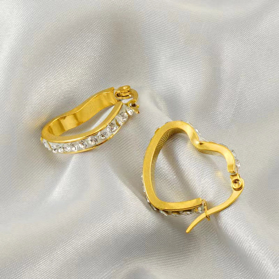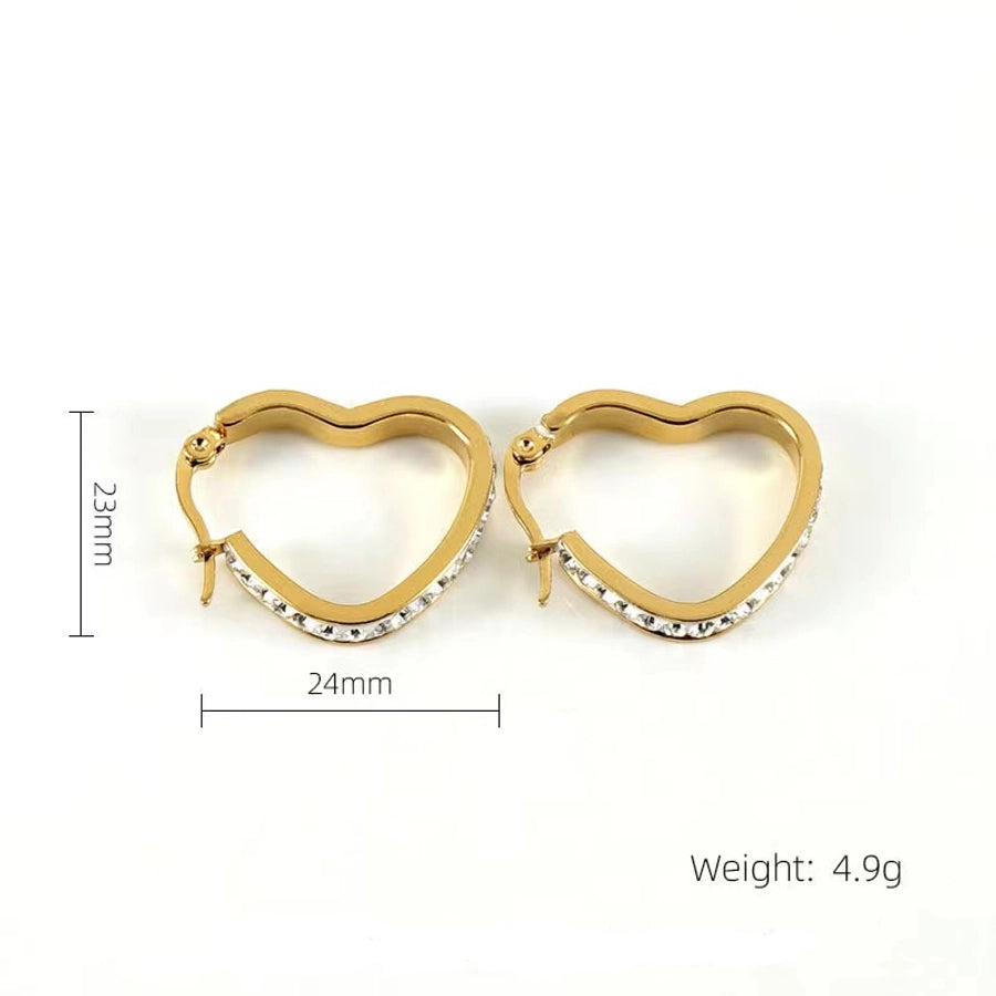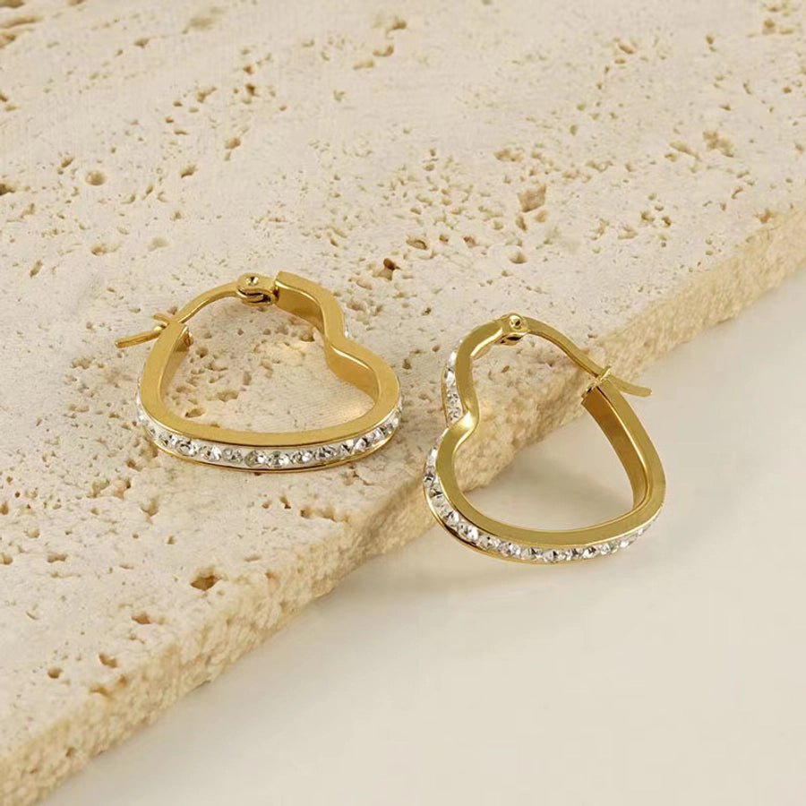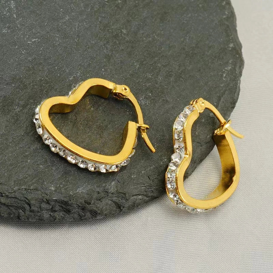 1 Pair Classic Style Heart Shape Plating Inlay Stainless Steel Rhinestones Gold Plated Earrings