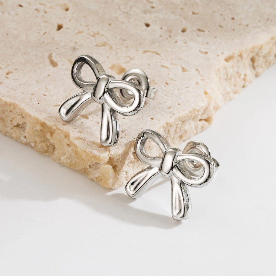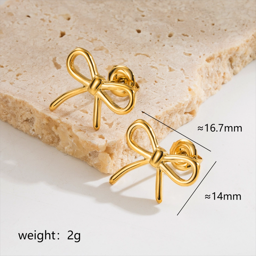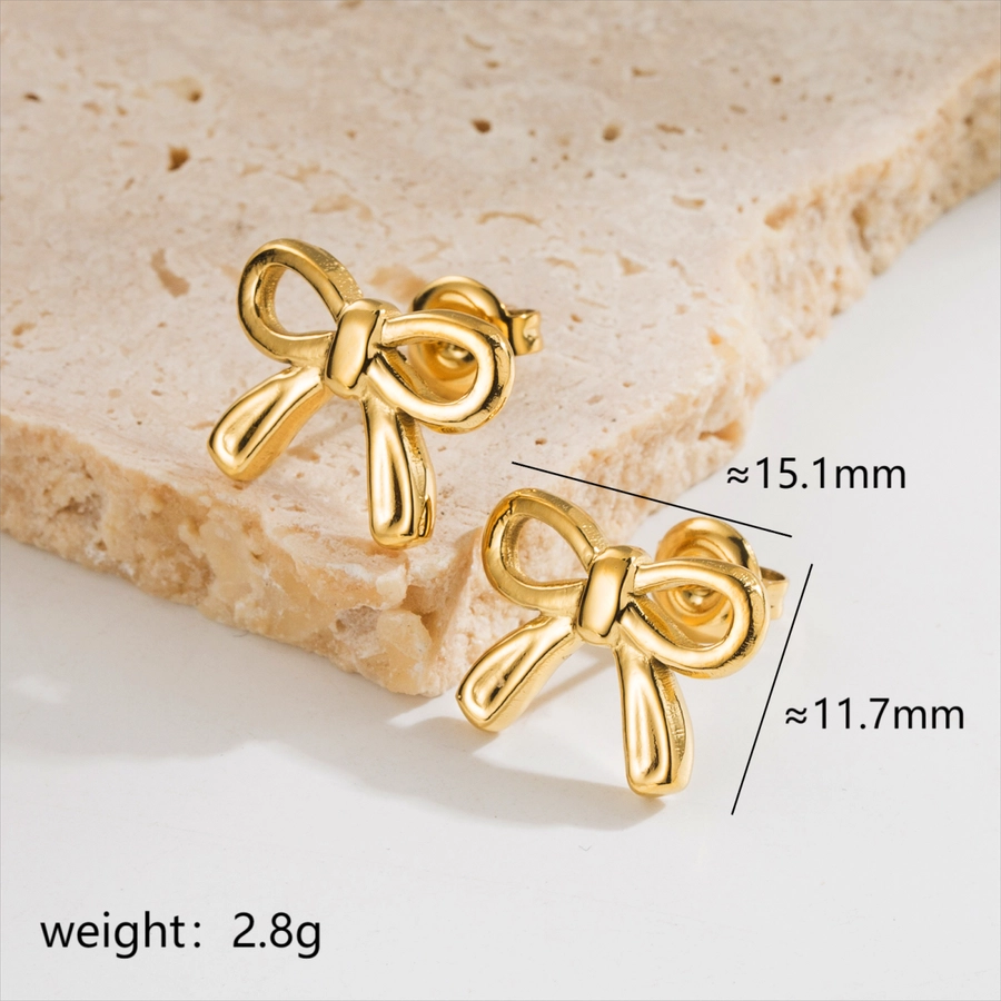 1 pair elegant simple style classic style bow knot plating stainless steel 18k gold plated ear studs