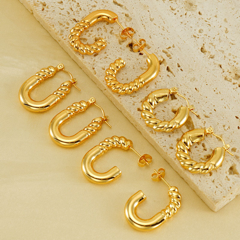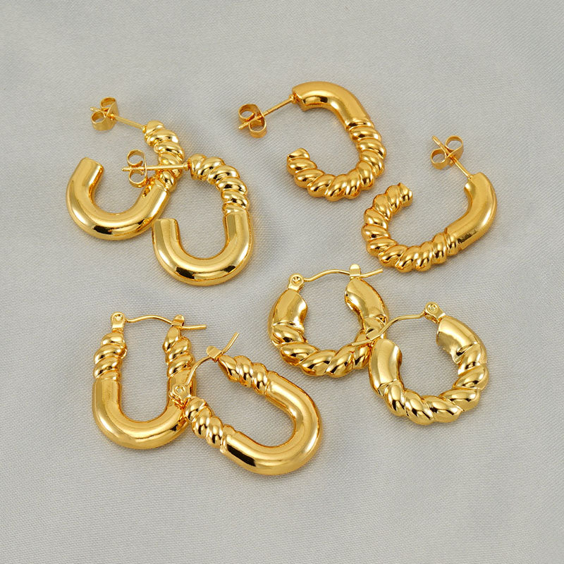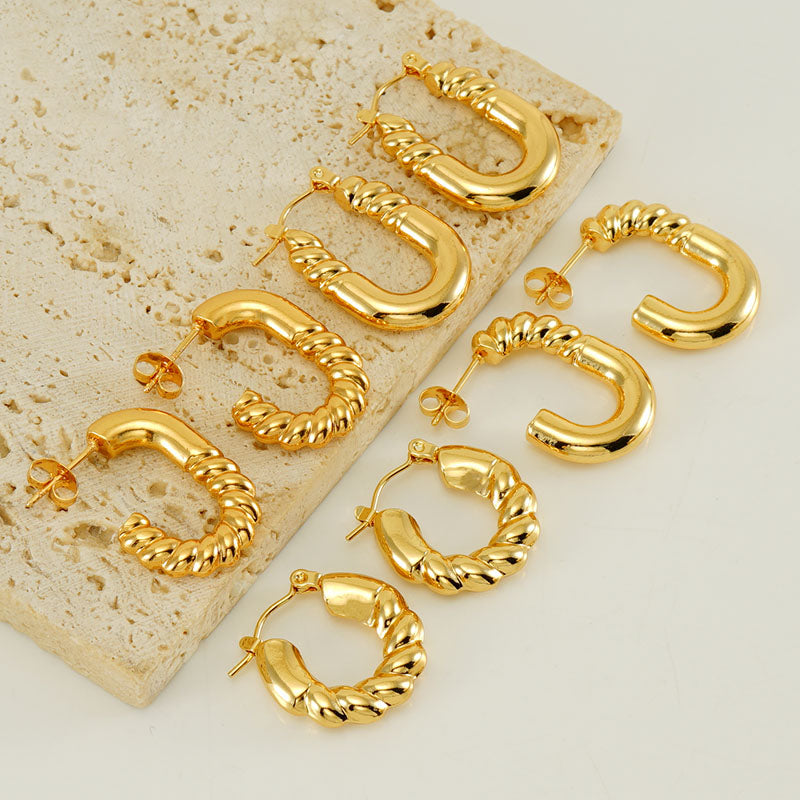 1 pair elegant square water droplets polishing plating stainless steel 18k gold plated earrings