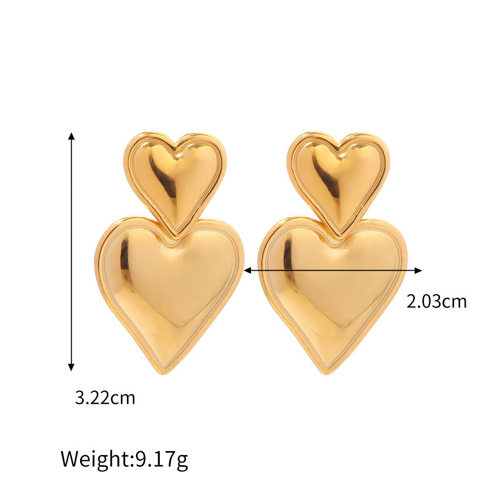 1 pair ig style basic streetwear heart shape plating stainless steel 18k gold plated drop earrings