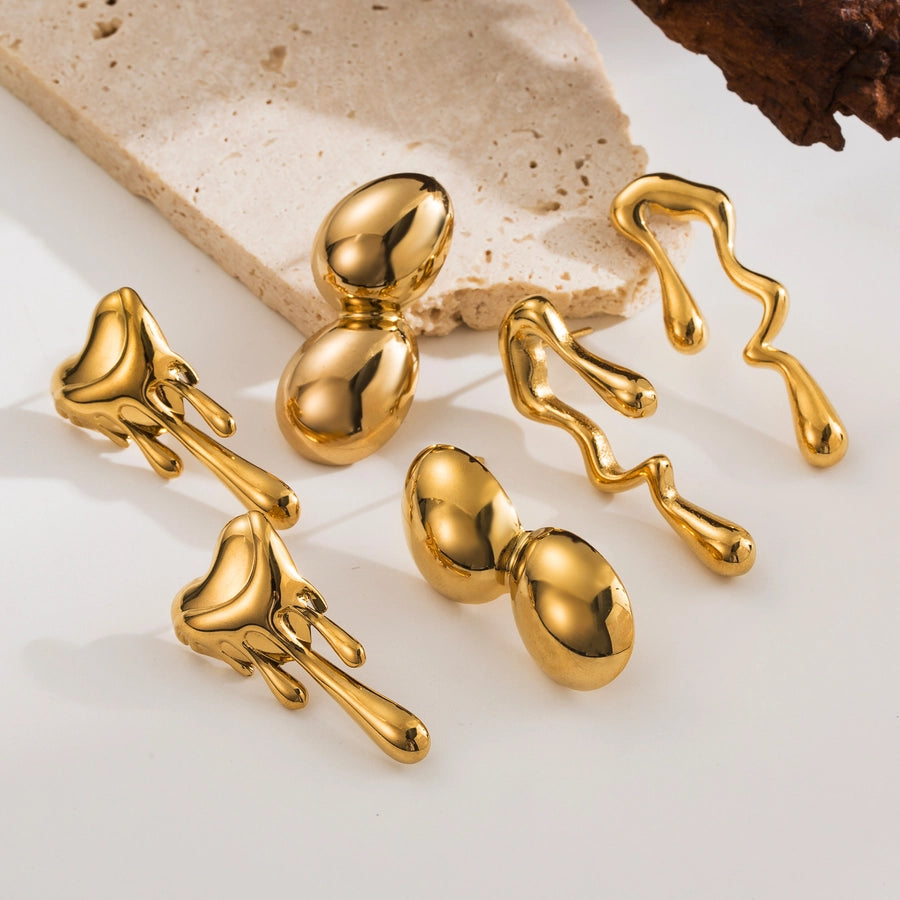 1 Pair IG Style French Style Simple Style Irregular Heart Shape Solid Color Oil Pressure Plating 304 Stainless Steel 18K Gold Plated Ear Studs