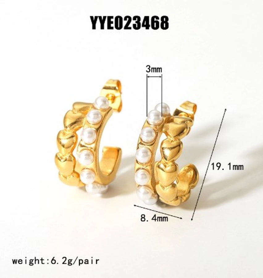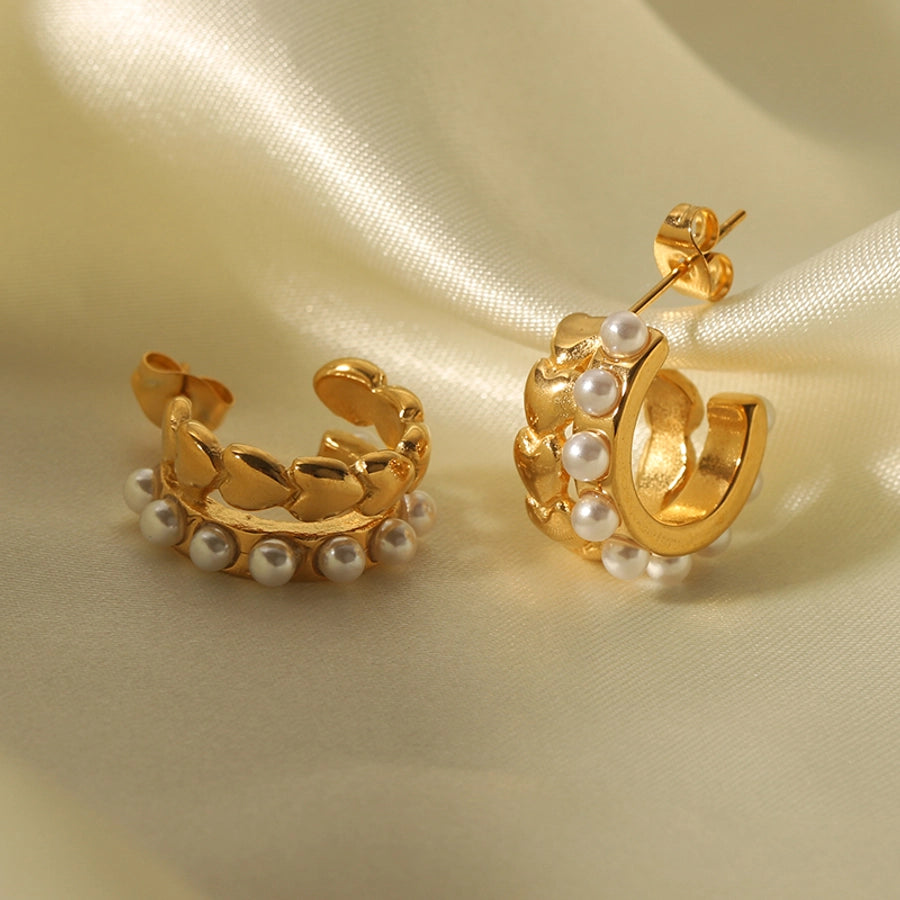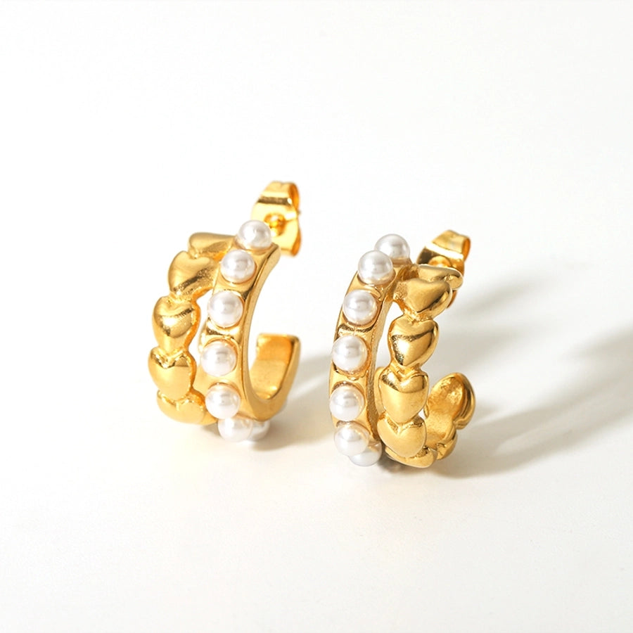 1 Pair IG Style Nordic Style C Shape Heart Shape Inlay Stainless Steel Pearl 18K Gold Plated Ear Studs