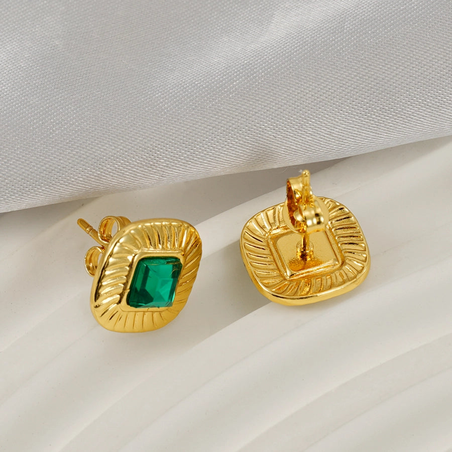 1 Pair Lady Square Polishing Inlay 304 Stainless Steel Glass 18K Gold Plated Ear Studs