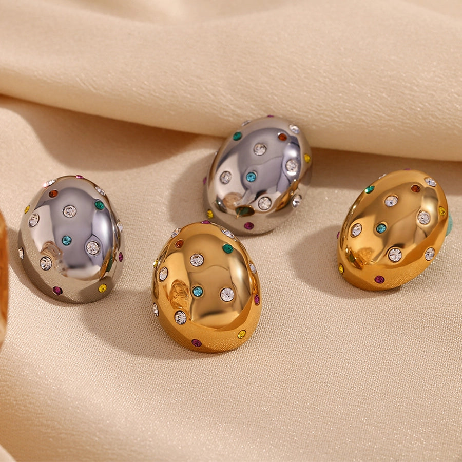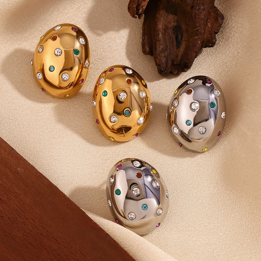 1 Pair Simple Style Classic Style Oval Inlay 304 Stainless Steel Zircon 18K Gold Plated Ear Studs