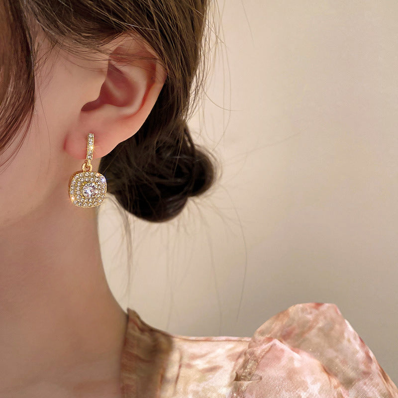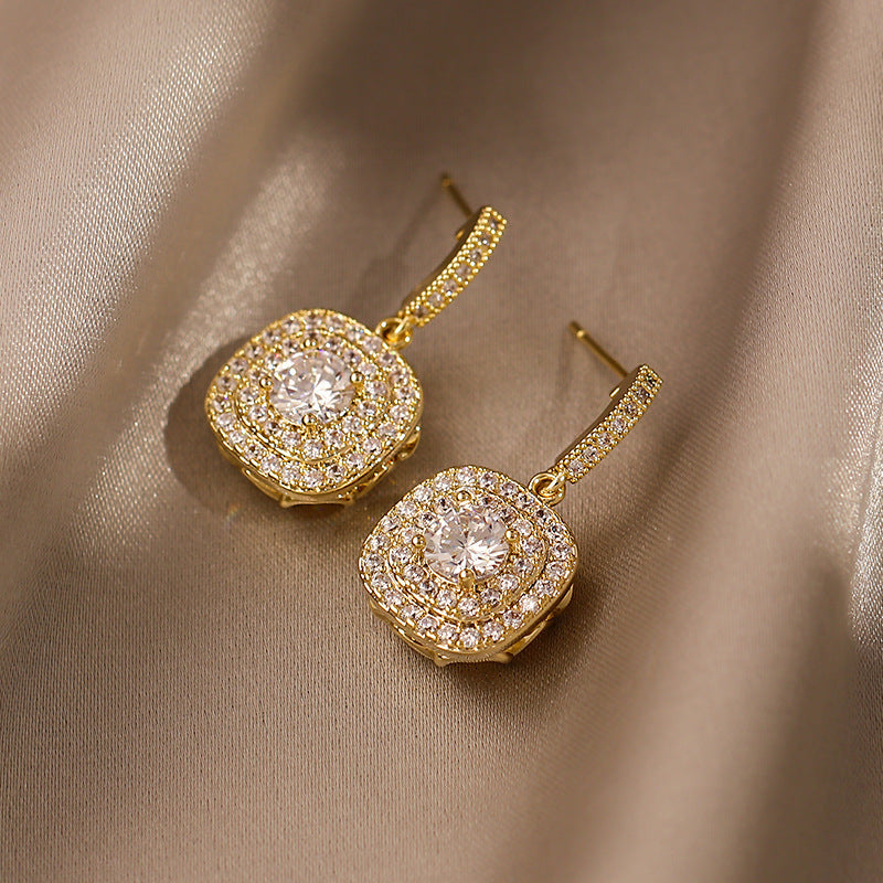 1 pair simple style square inlay stainless steel zircon drop earrings