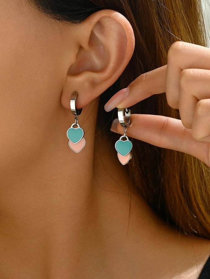 1 Pair Vintage Style Simple Style Heart Shape Inlay 304 Stainless Steel Acrylic Drop Earrings