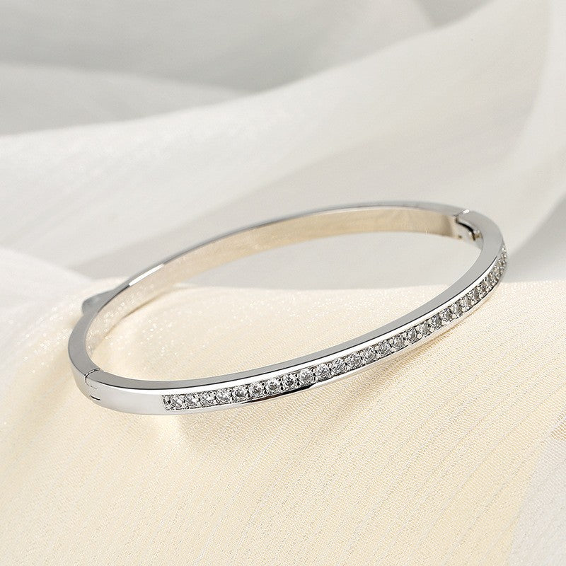 casual elegant luxurious solid color stainless steel polishing plating inlay rhinestones 18k gold plated bangle