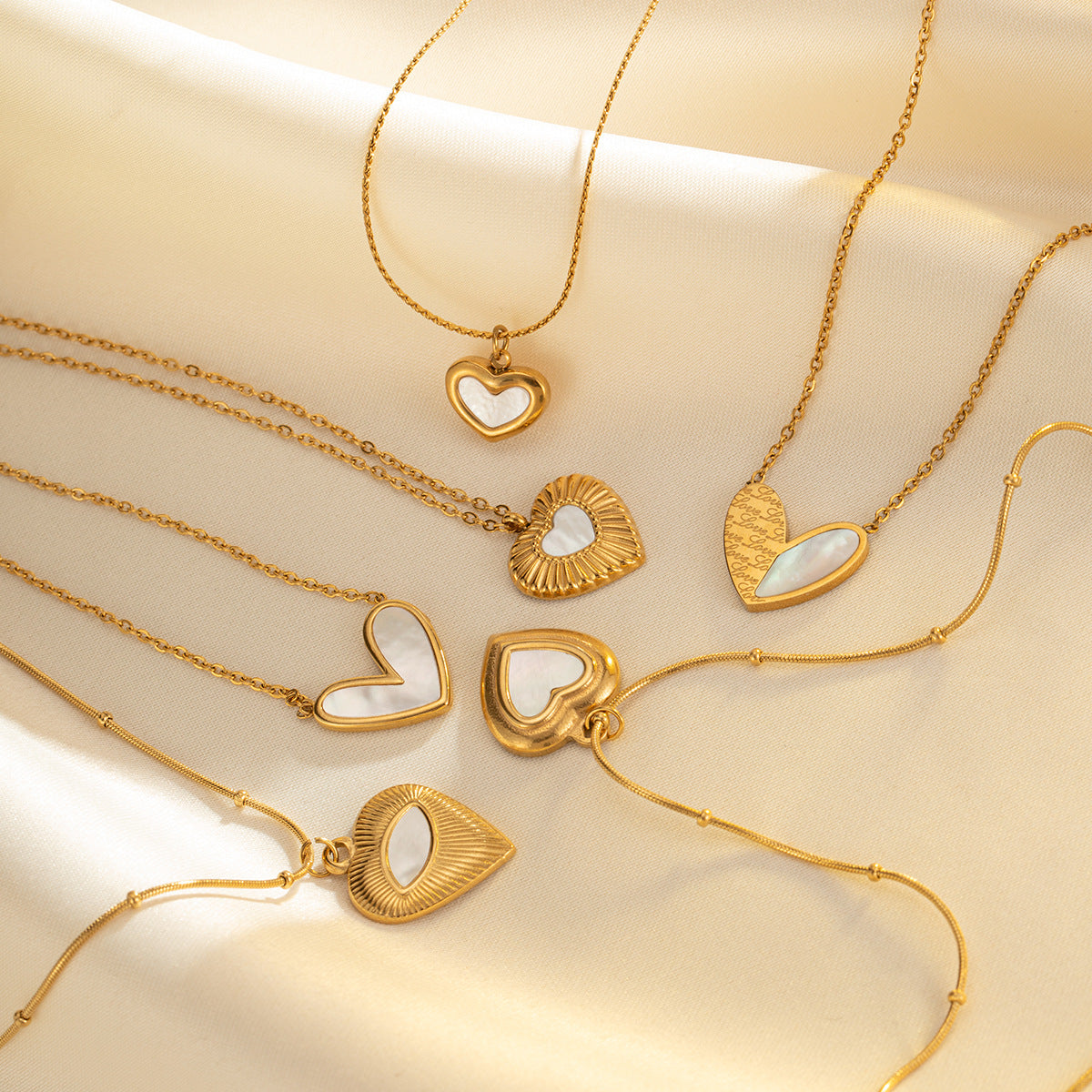 Jewelry Basic Modern Style Classic Style Heart Shape Titanium Steel Shell Fritillary 18K Gold Plated Plating Inlay Pendant Necklace