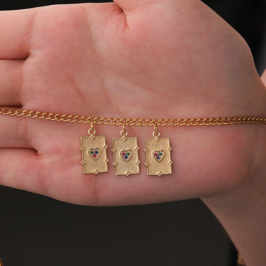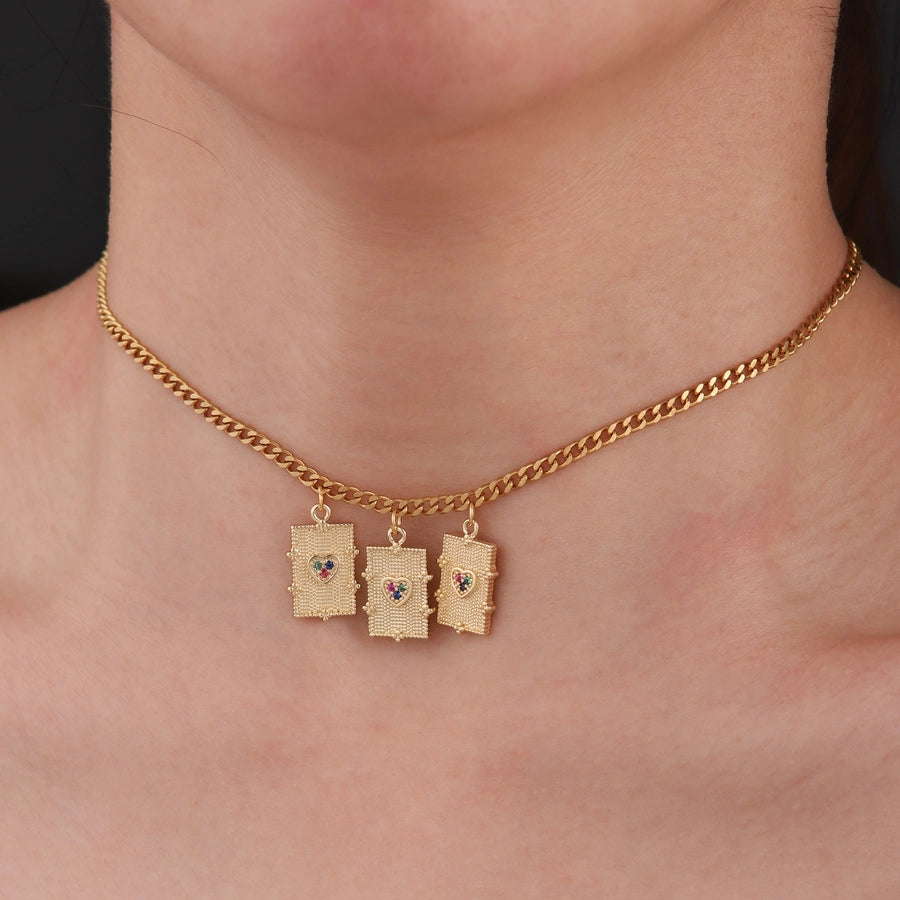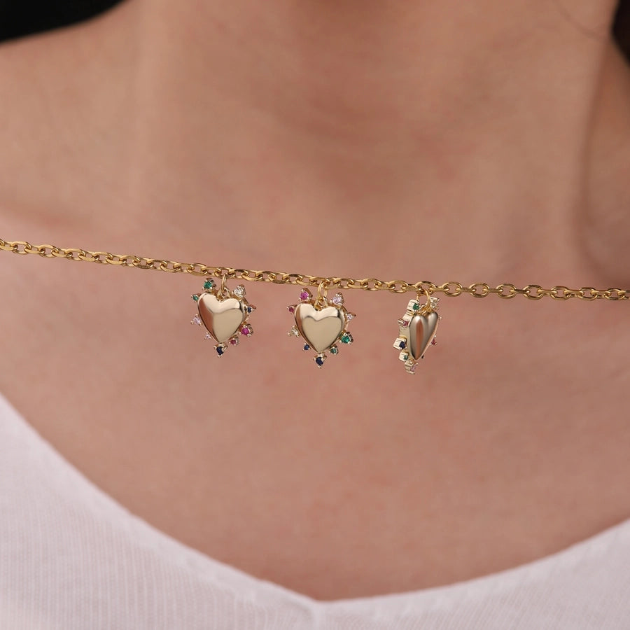 Jewelry Cute Simple Style Moon Heart Shape 304 Stainless Steel Copper Zircon 18K Gold Plated Inlay Pendant Necklace