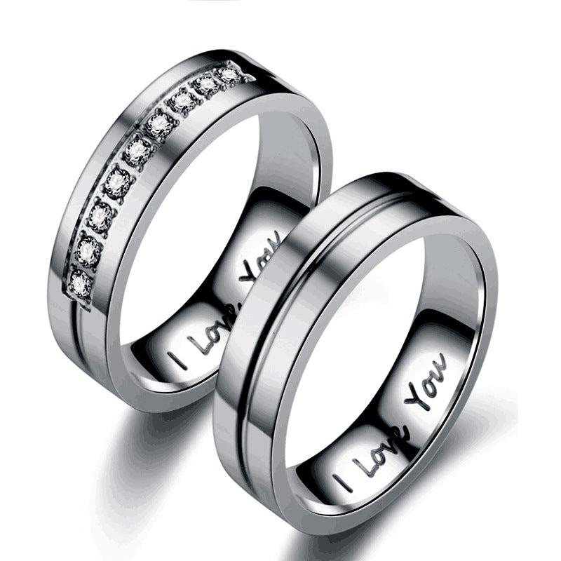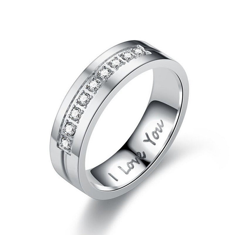 Jewelry letter inlaid diamond stainless steel ring