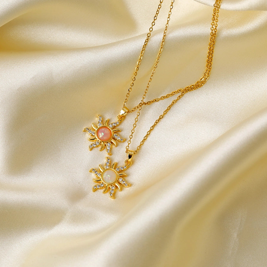 Jewelry Simple Style Classic Style Commute Sun Titanium Steel Resin Zircon 18K Gold Plated Inlay Pendant Necklace