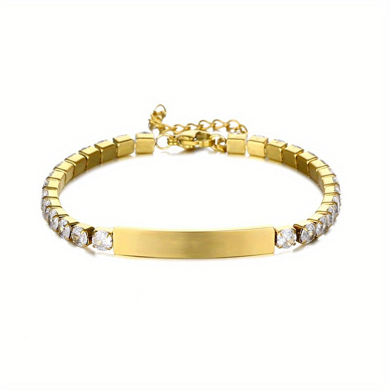 Simple style shiny solid color rectangle stainless steel plating inlay zircon 18k gold plated bracelets