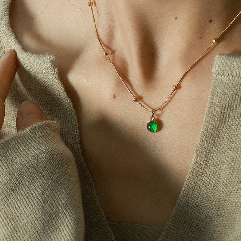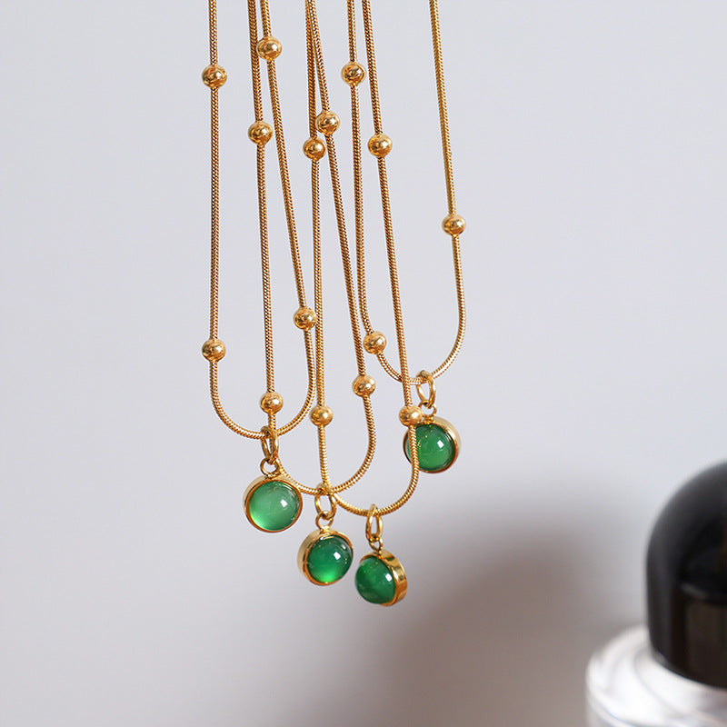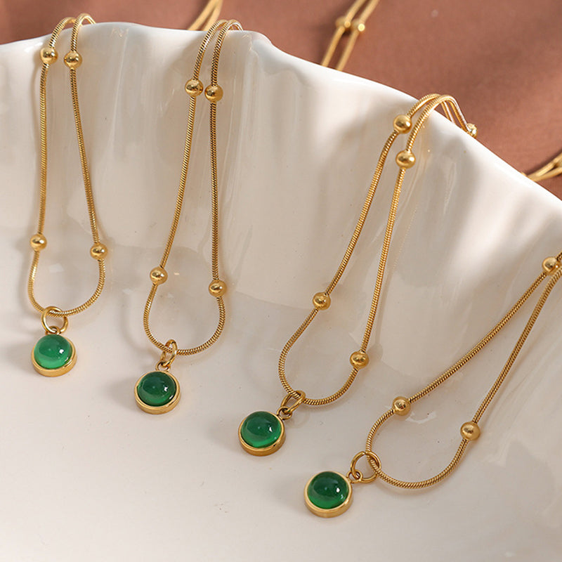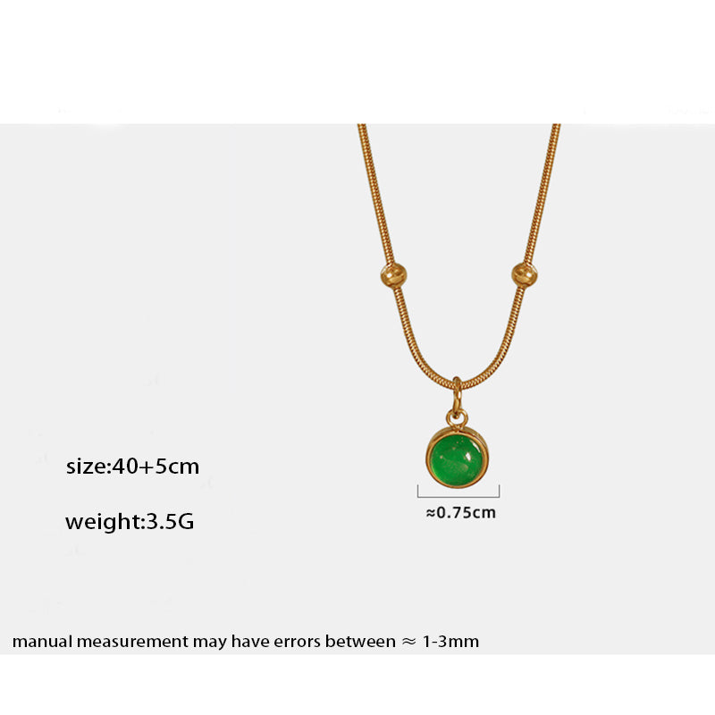 vintage style round titanium steel plating inlay natural stone 18k gold plated pendant necklace