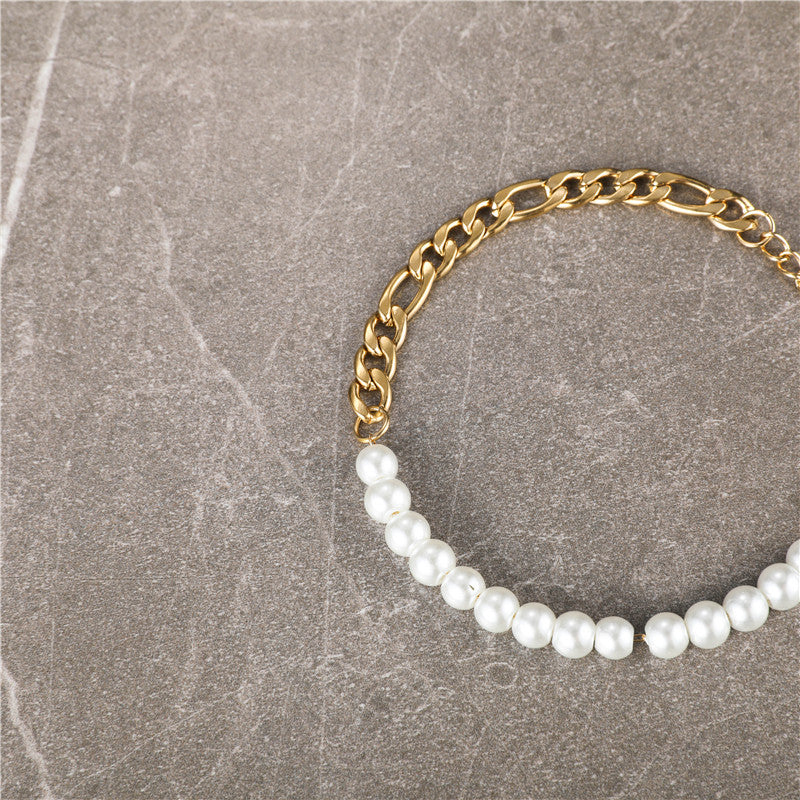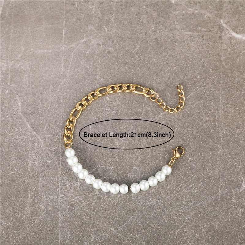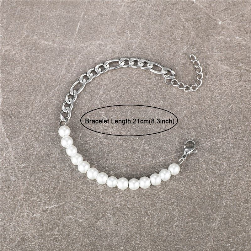 Vintage style simple style round stainless steel artificial pearl unisex bracelets